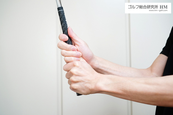 勿論、テンフィンガーグリップも左手の親指の上に右手の平を重ねてゆくわけですが、ただ、右手の小指を左にからめてゆく他のグリップに比べると、例えば、右手を少しだけフックグリップで握るといったことをしやすいグリップだと思います。