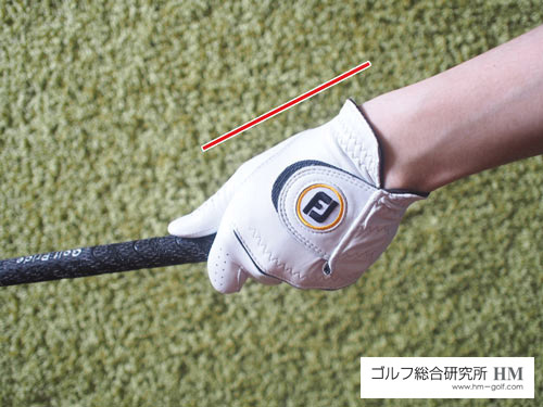 今度は左手首を予め適度にコックした状態で握っている例です。