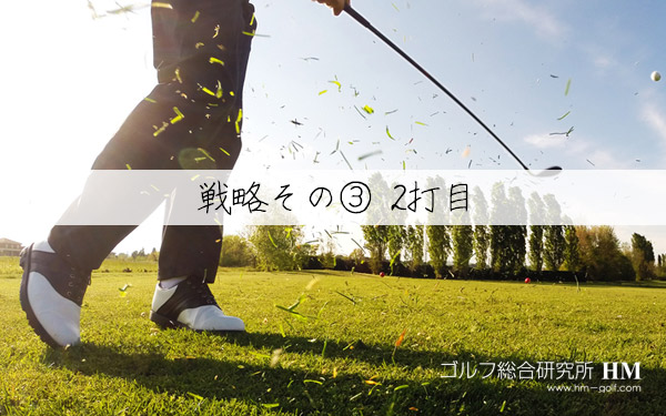 こういうことを考えた時、これもティーショットと同じ考え方で、例えば、OBですとか、池の中に入れるとか、そういった大叩きにつながるようなことを避けるということが、セカンドショット以降も大事になってきます。
