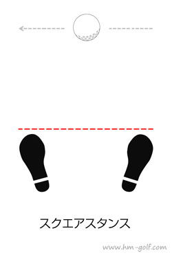 ゴルフでは、ボールと目標を結んだ飛球線に対して、両足を結んだラインが平行になるように構えるスクエアスタンスが基本になります。