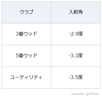 フェアウェイウッドとユーティリティ、特にロングアイアンの代わりに入れるユーティリティに関しては、この入射角が若干違います。