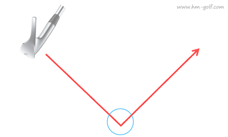 ただ、それ以外のクラブの場合はアッパーブローでは打ちません。また、特にアイアンの場合はその打ち方ではヘッドの最下点がボールの手前になり、結果的にはトップすることが多くなります。